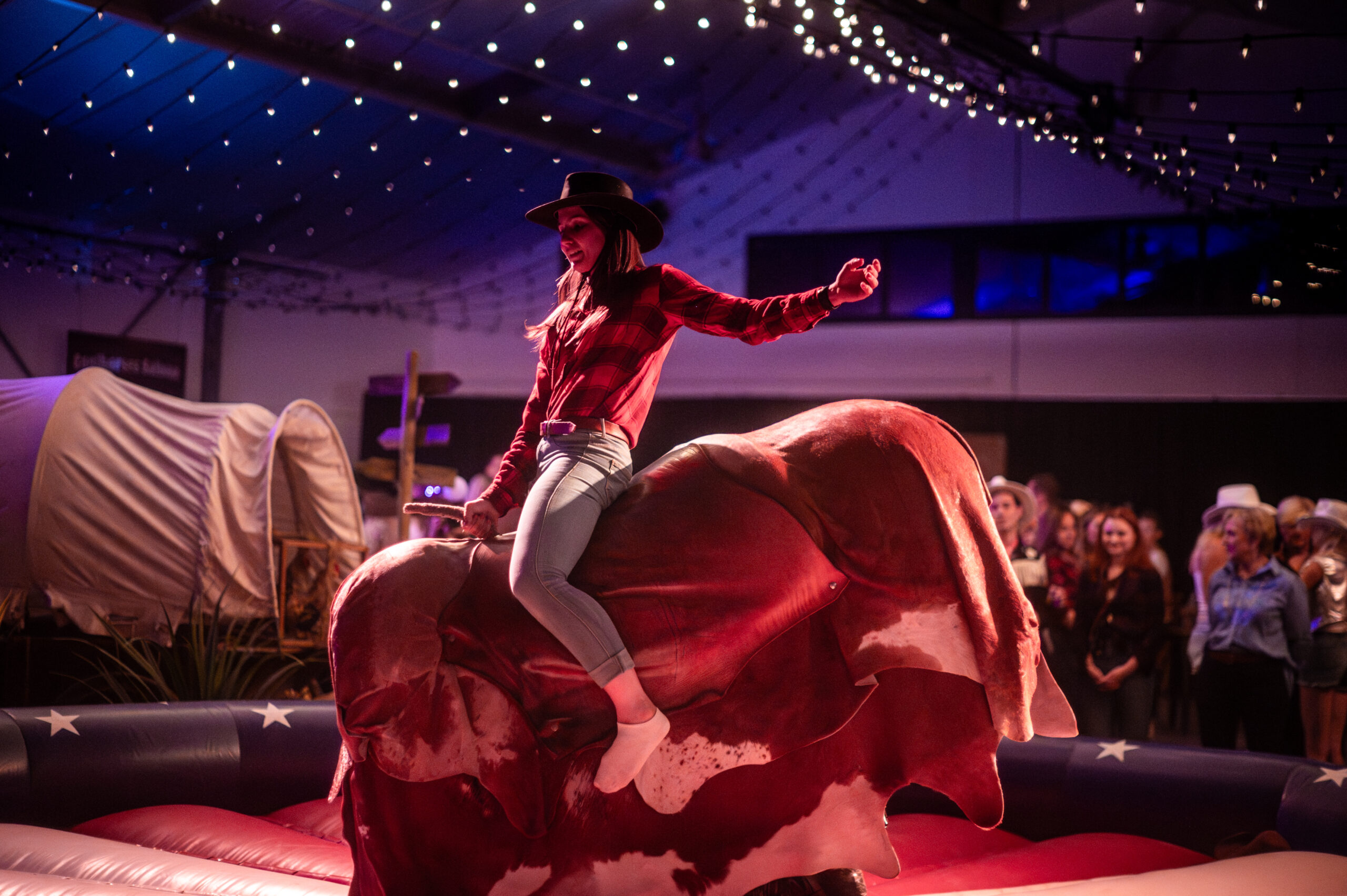Azorti toverde de paardenpiste van Coolhorses om tot een warme saloon waar klanten, vrienden en familie zich meteen thuis voelden. Het decor, de hamerklop, de rodeo en de live zang trokken iedereen als vanzelf in het verhaal. Geen strak schema, wel een natuurlijke flow: gesprekken die op gang komen, lachsalvo’s rond de rodeo, en een fotobooth die de kleine, echte momenten vastlegt. Zo ontstaat er die typische Far West-energie, speels, toegankelijk en net genoeg bravoure.