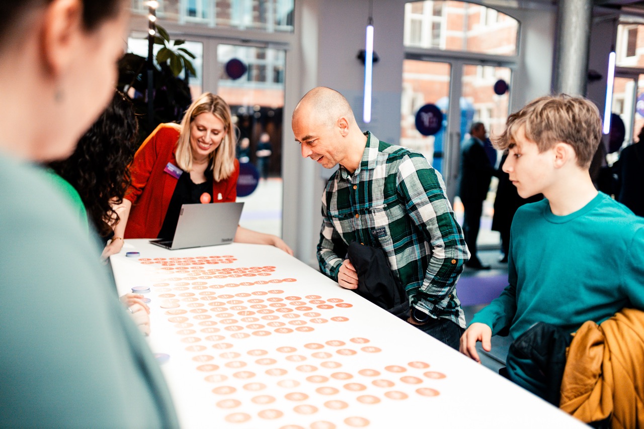 - Doelgroepbetrokkenheid: De XL postbus was essentieel om zowel de huidige als toekomstige generaties bij het event te betrekken. We werkten nauw samen met FTI Leuven om ervoor te zorgen dat elke deelnemer een actieve rol kon spelen in het vormgeven van de toekomst, waardoor een dynamische interactie ontstond die de visie van FTI Leuven op een krachtige manier versterkte.
